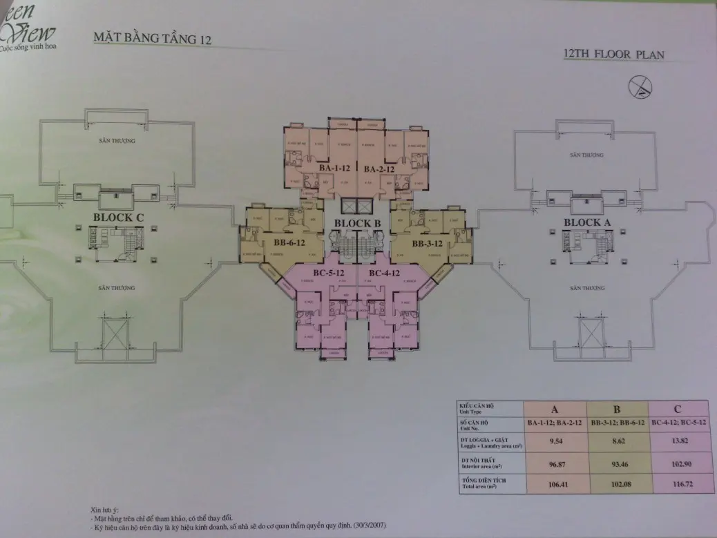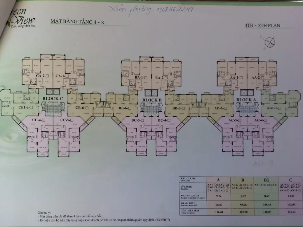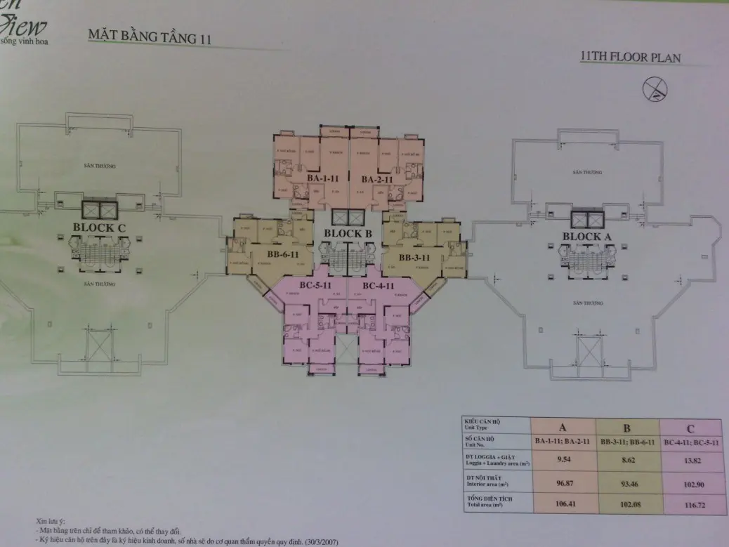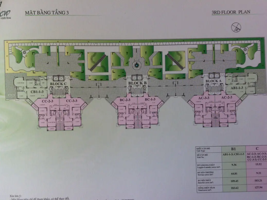 - Block A và C: Cao 10 tầng, nằm hai bên.