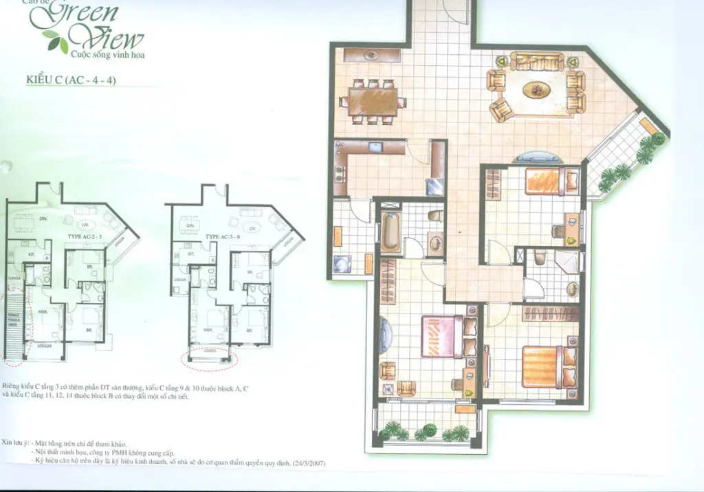 Mặt bằng căn hộ Green View Phú Mỹ Hưng được thiết kế tối ưu với sự kết hợp giữa tính thẩm mỹ và công năng sử dụng. Dự án gồm 3 block: