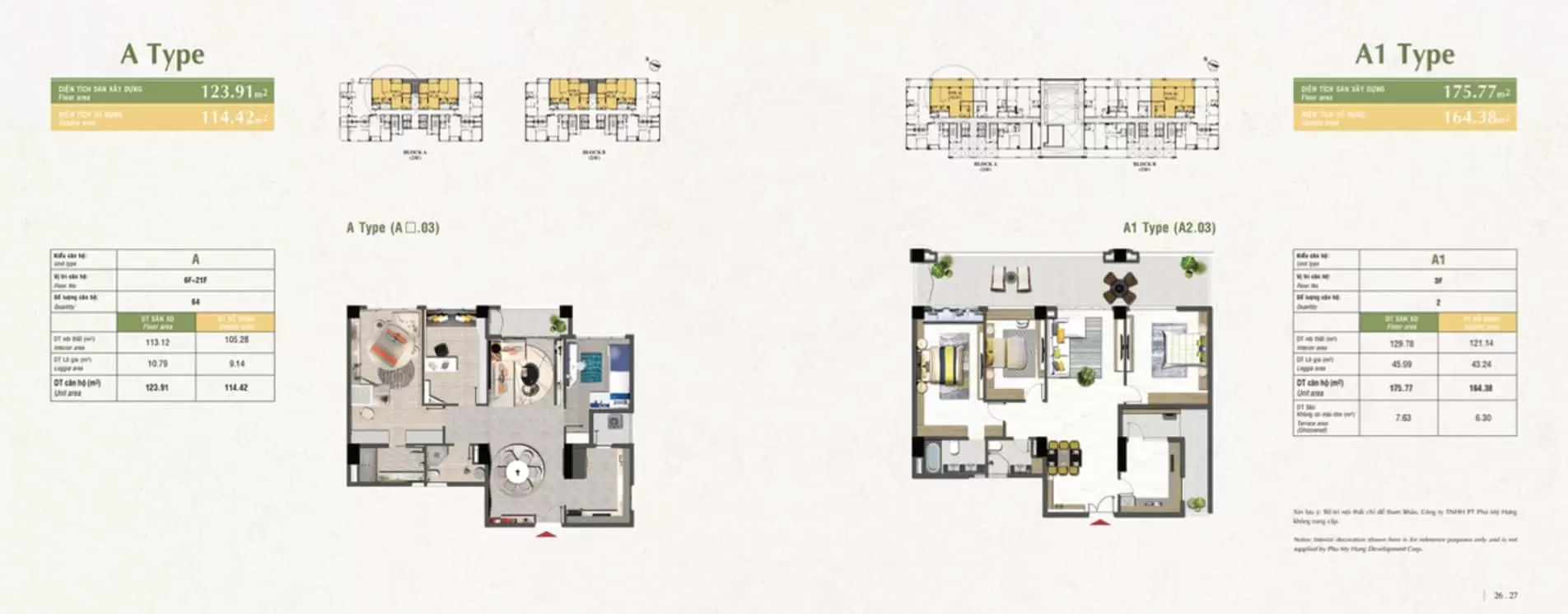- Diện tích: 140-260m² (3-4 phòng ngủ).