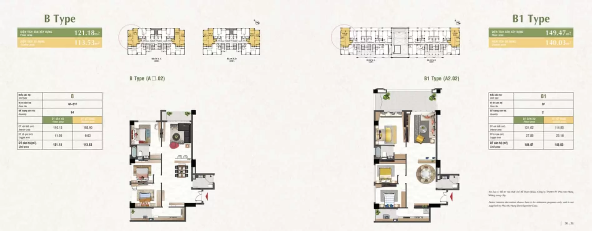 - Diện tích: 85-130m² (2-3 phòng ngủ).