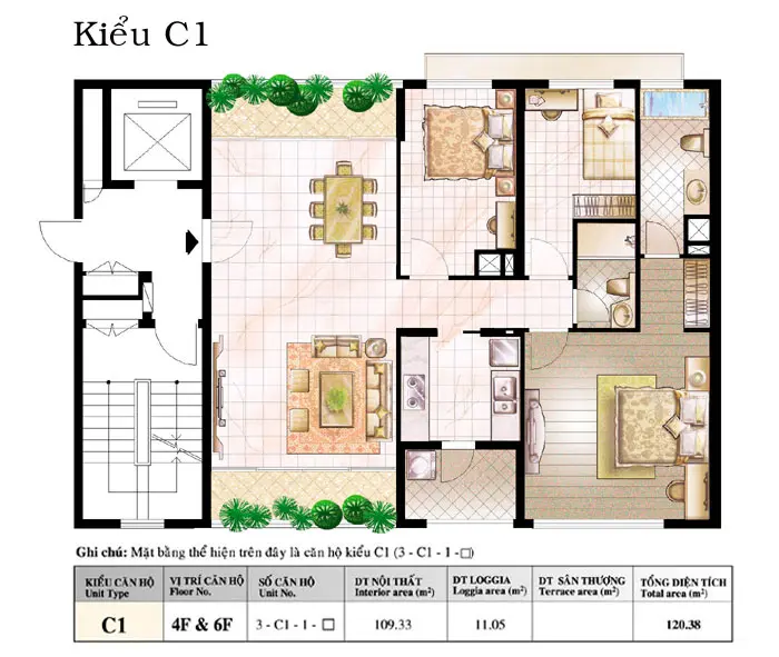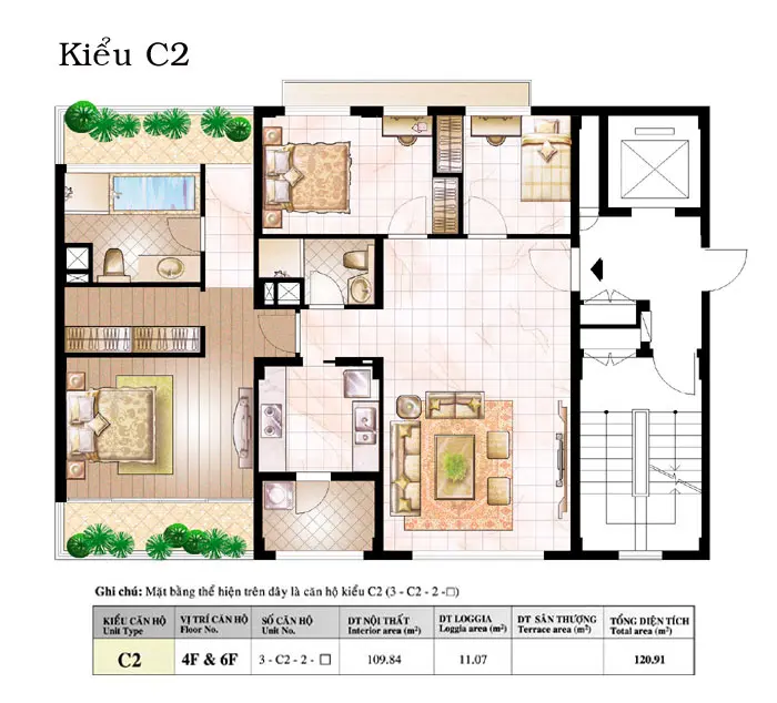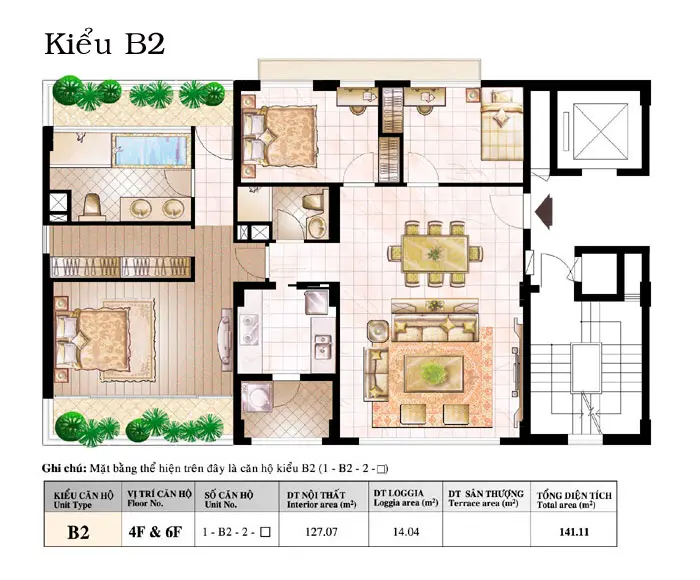 - Dien tích: 72-94m² (2 phòng ngủ), 120-150m² (3 phòng ngủ).