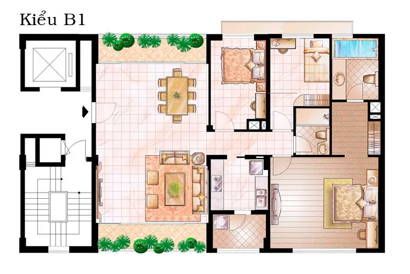 - Diện tích: 70-120m² (2-3 phòng ngủ).