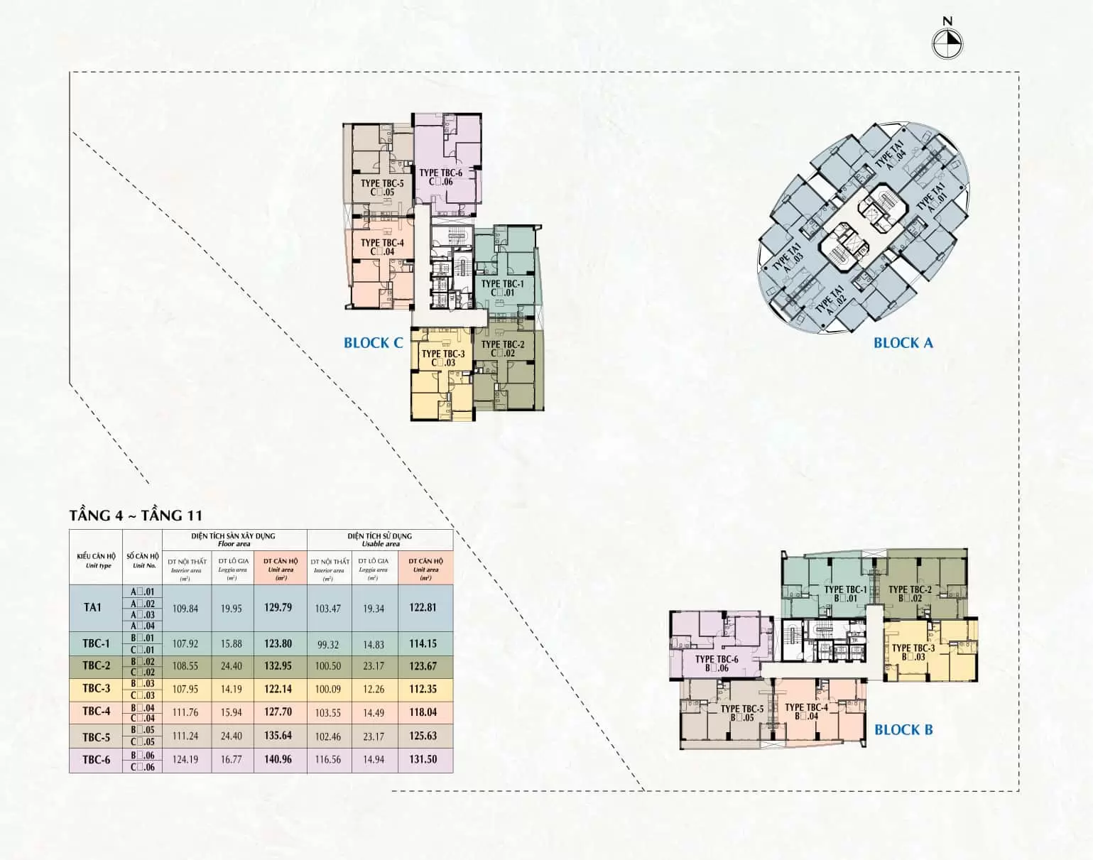 - Từ tầng 3 trở lên: Các căn hộ với mật độ thấp (chỉ 4-6 căn/sàn), đảm bảo sự riêng tư và tất cả đều có 2 mặt thoáng đón ánh sáng tự nhiên.