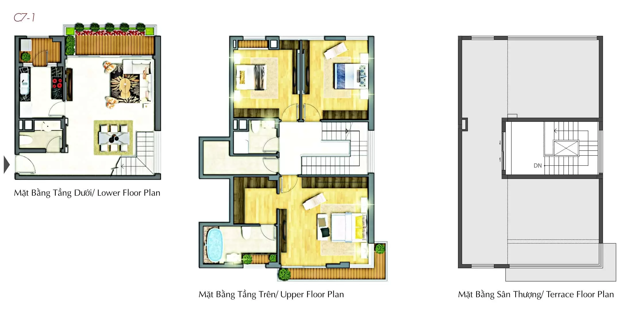 - Townhouse: Nhà phố 4 tầng (409-413 m²), kết hợp hoàn hảo giữa ở và kinh doanh.