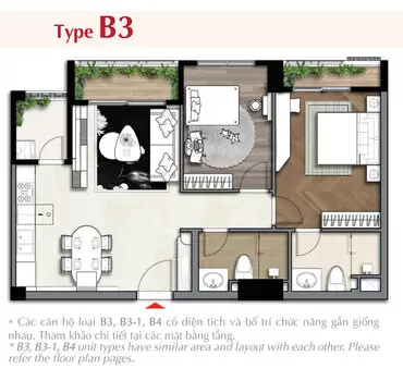 - Đa dạng diện tích: Từ căn hộ nhỏ gọn 1 phòng ngủ dành cho người độc thân, đến căn 3 phòng ngủ lý tưởng cho gia đình đông thành viên, hay Duplex và Penthouse sang trọng dành cho những ai yêu thích không gian biệt thự trên cao.