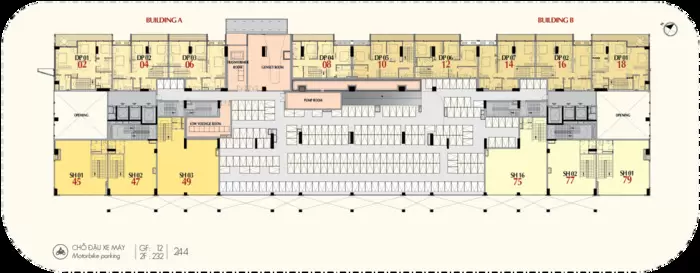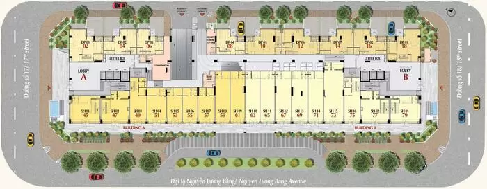 - Shophouse thương mại: Tầng trệt và tầng 2 bố trí 18 căn shophouse từ các thương hiệu lớn, đáp ứng nhu cầu mua sắm, ẩm thực ngay tại chỗ.