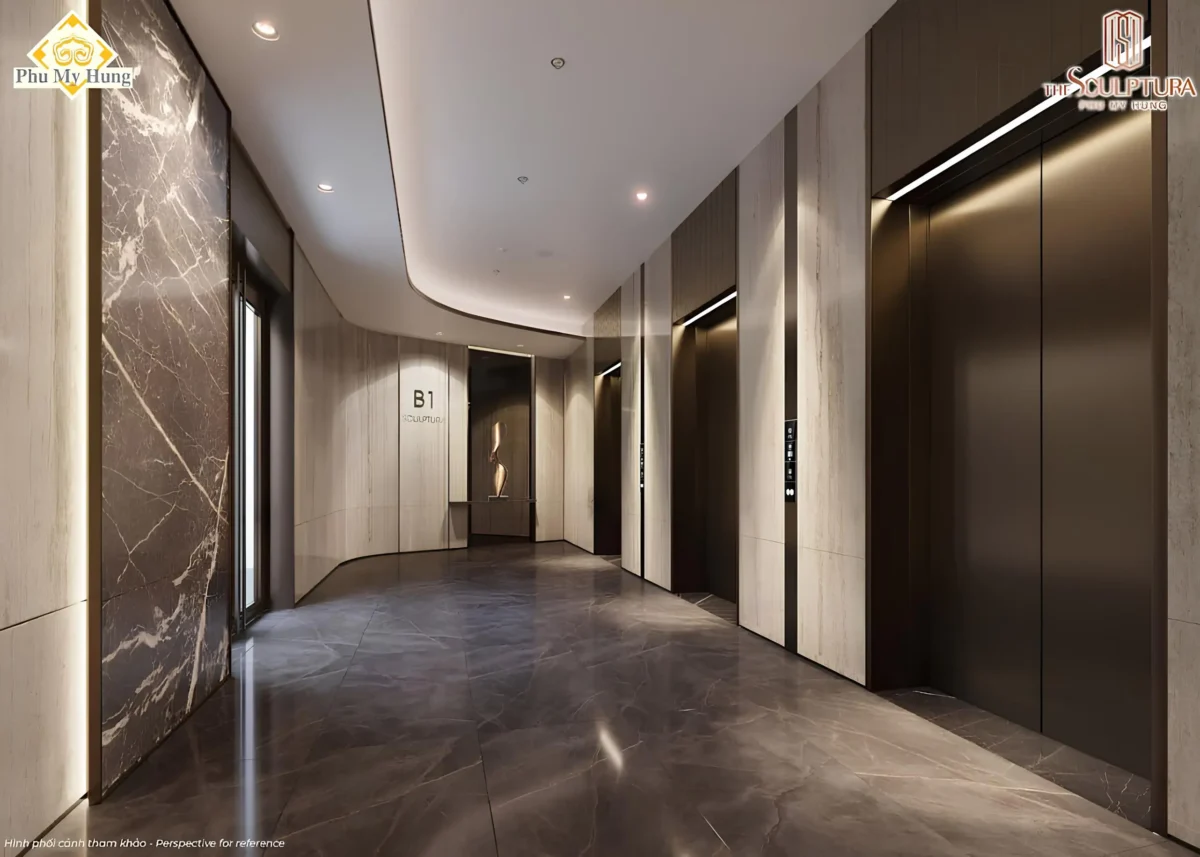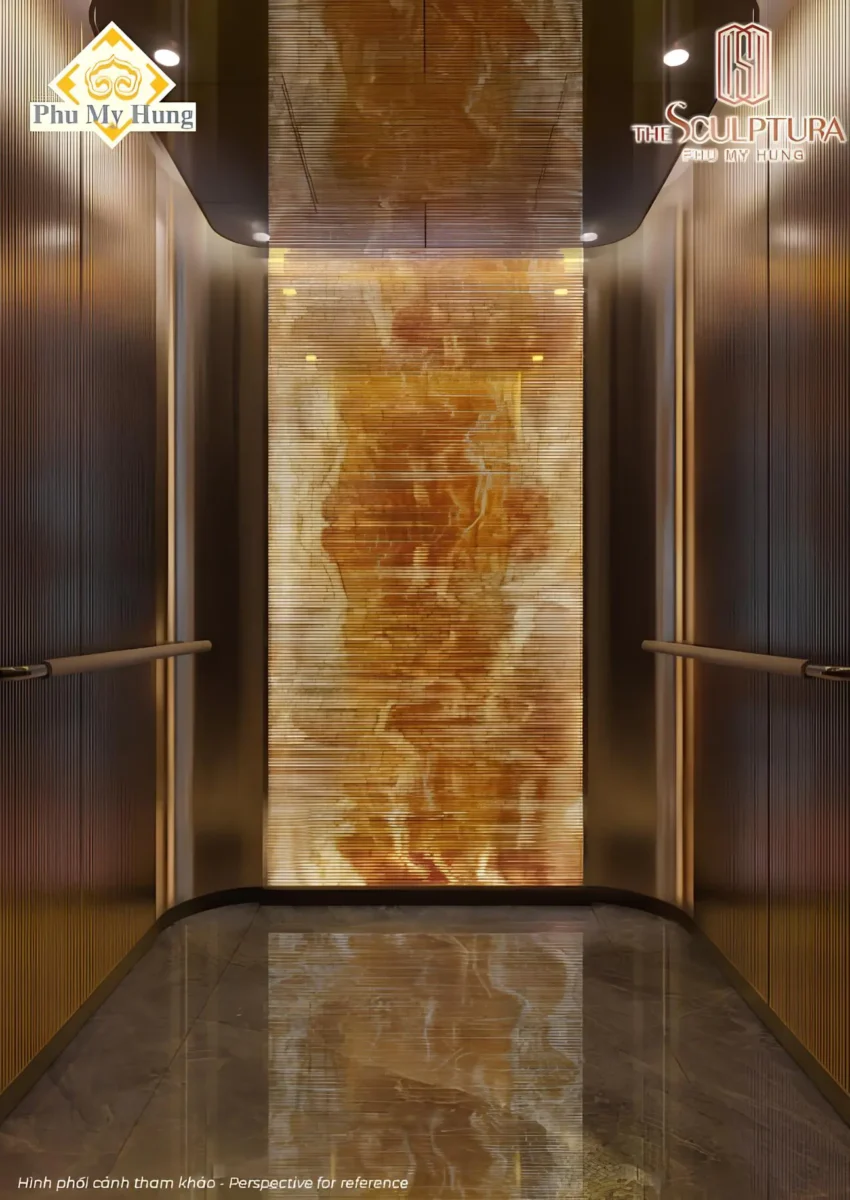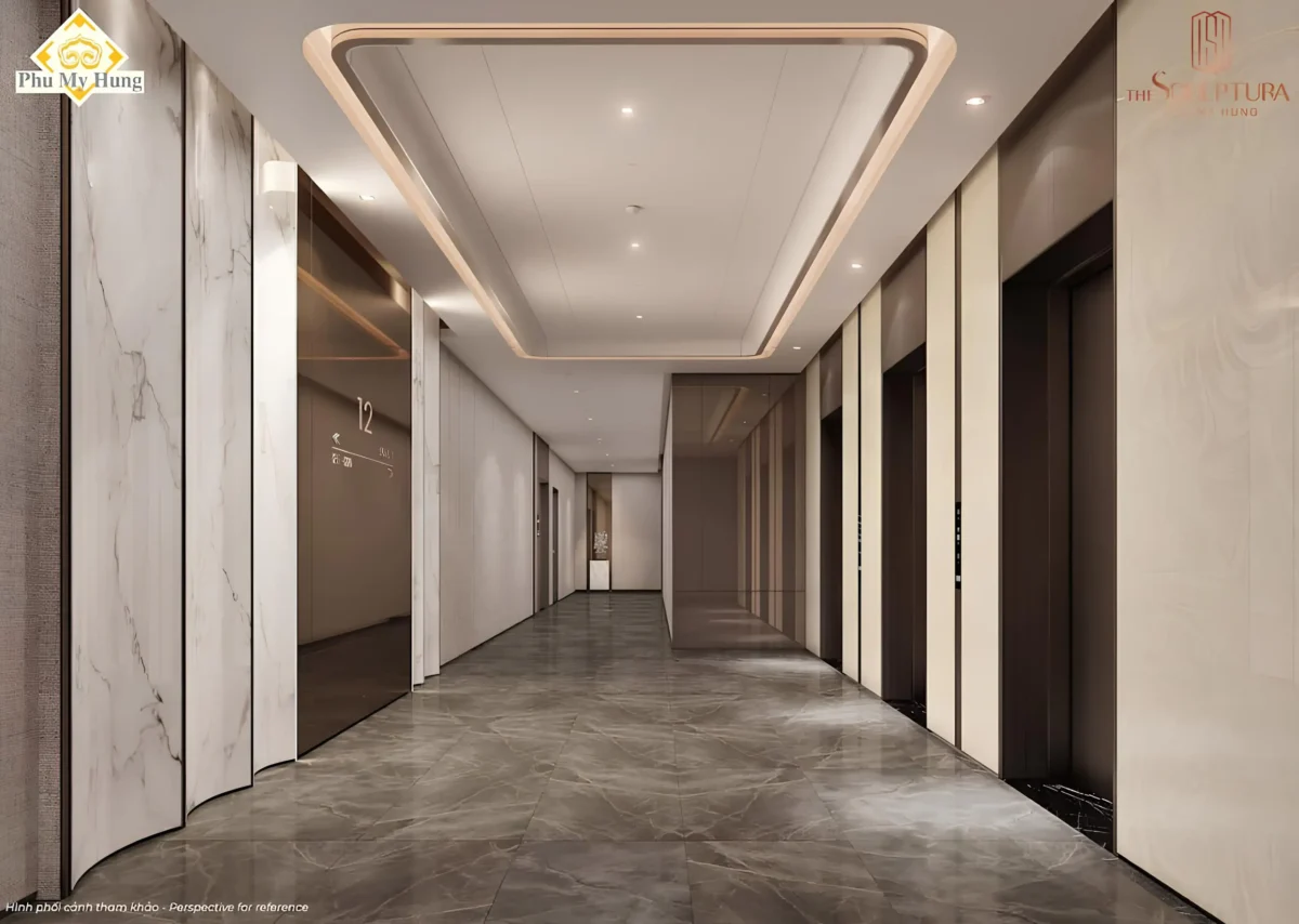 Khu vực chung: Thang máy và các không gian công cộng được chăm chút tỉ mỉ, tạo nên sự liền mạch trong thiết kế và trải nghiệm sống.