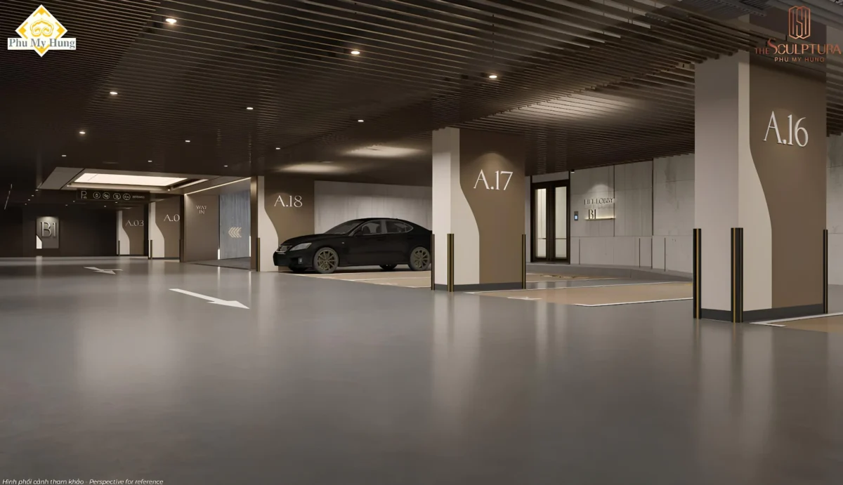 Tầng hầm: Vượt xa tiêu chuẩn bãi đậu xe thông thường với vật liệu cao cấp, đảm bảo sự tiện nghi và sang trọng.