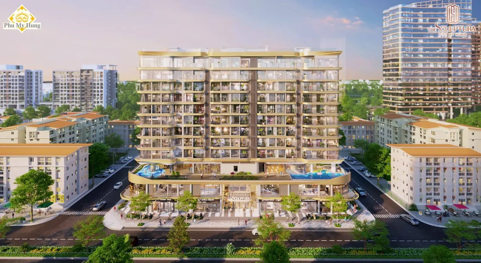 The Sculptura Phú Mỹ Hưng là sự kết hợp hoàn hảo giữa thiết kế hiện đại và cảm hứng nghệ thuật. Tòa nhà cao 12 tầng nổi bật giữa các khu thấp tầng xung quanh, tạo nên một dấu ấn kiến trúc độc đáo tại khu đô thị.