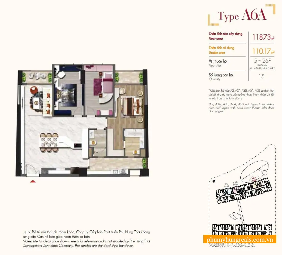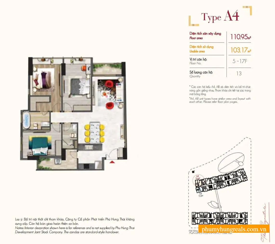 • 4 phòng ngủ (Penthouse): 2 căn đặc biệt.