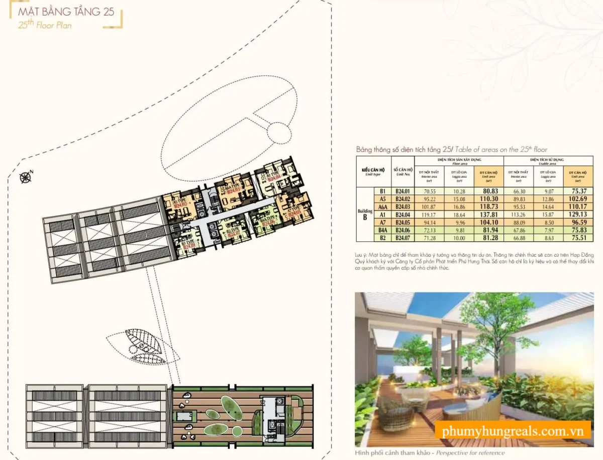 • Penthouse duplex: 187 – 234m2 (5 căn)