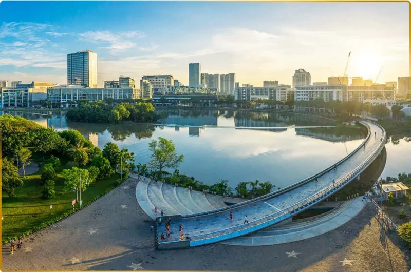 Hồ Bán Nguyệt và Cầu Ánh Sao (1 phút): Hai địa danh biểu tượng của Phú Mỹ Hưng, là nơi tổ chức các sự kiện văn hóa nổi bật như Hội Hoa Xuân, Countdown Party, và là không gian lý tưởng để thư giãn, check-in.